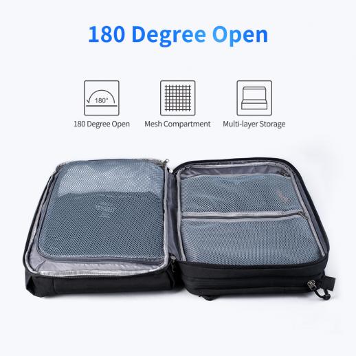 | Ampio angolo di apertura: 180° aperto e il contenuto può essere visto a colpo d'occhio. Scomparti multipli sono conservati separatamente in modo che gli oggetti non si ingombrano. | Design espandibile: la capacità di questa borsa può essere espansa liberamente con la cerniera. | Comodo e adatto per le valigie: schienale in rete ben imbottito con un'eccellente traspirabilità, riduce notevolmente l'afa per il trasporto a lungo. | ||