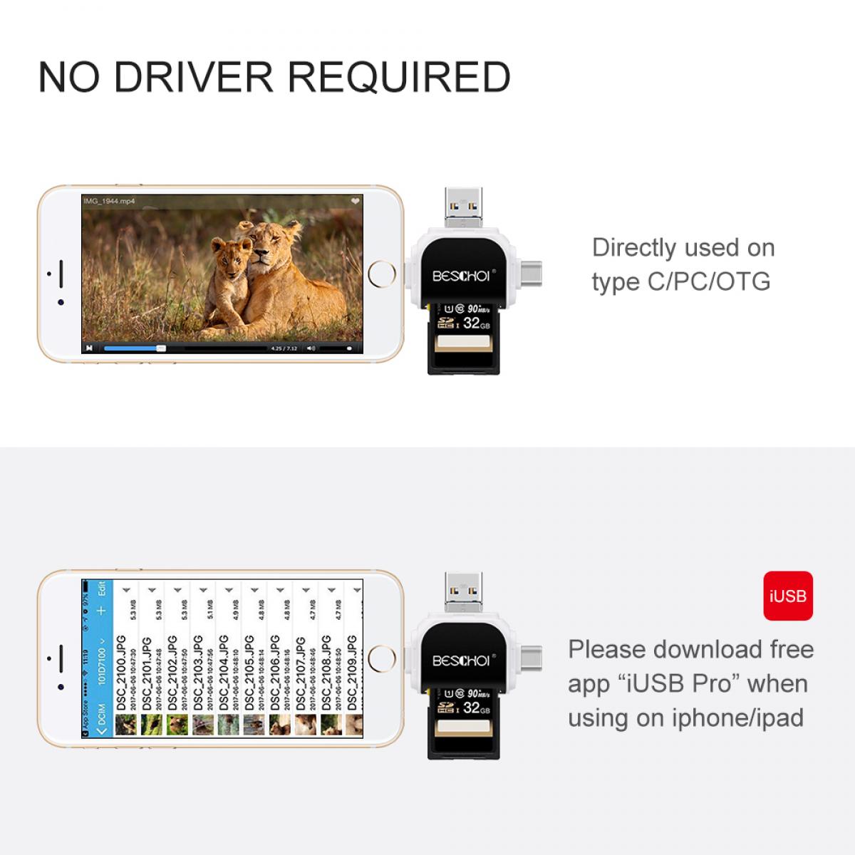 - * Elevata compatibilità applicabile a oltre il 90% dei prodotti di visualizzazione elettronica sul mercato: computer, IPad, IPad pro, TYPy-C, interfaccia IPhone; può eliminare file o copiare e incollare file dalla scheda di memoria su iPhone o iPad. o copia i file da iPhone o iPad sulla memory card