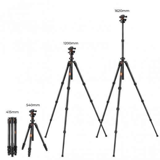 Treppiede da viaggio leggero in fibra di carbonio da 64"/1,6 m con testa a sfera da 36 mm, capacità di carico 8 kg/17,6 libbre, piastra a sgancio rapido, per fotocamere DSLR per uso interno ed esterno K254C2+BH-36L