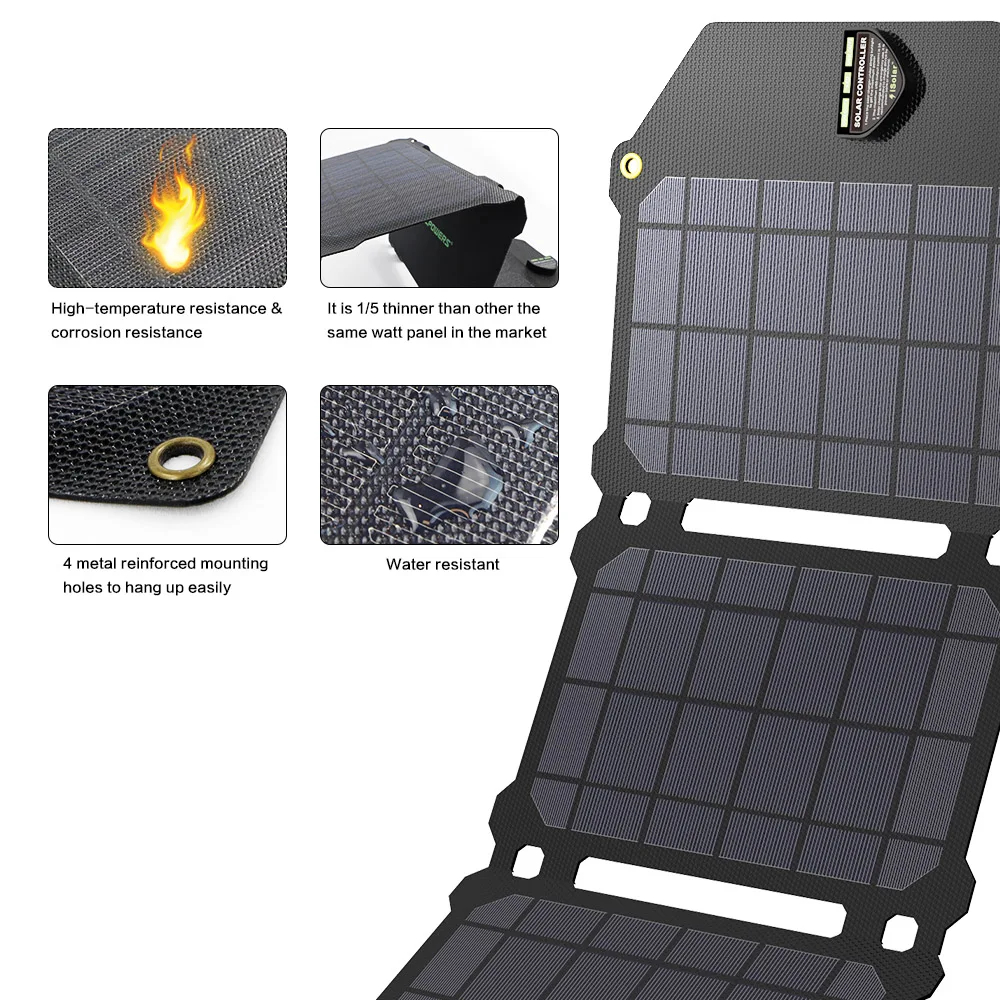 Pannello solare portatile monocristallino impermeabile IP67 pieghevole da 20 Watt con USB QC3.0 per telefoni cellulari, laptop, stazioni elettriche per zaino, campeggio, escursionismo e altro ancora