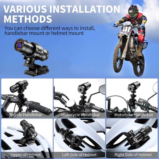 - * 【Batteria integrata per una facile installazione】 La fotocamera del casco con batteria ricaricabile integrata da 1050 mAH supporta tempi di registrazione più lunghi. Supporta una scheda TF da 32-128 GB (non inclusa), che ti consente di registrare momenti più meravigliosi. Con il supporto per bicicletta e moto equipaggiato, puoi sperimentare applicazioni multi-scenario, facili da usare anche per i principianti.