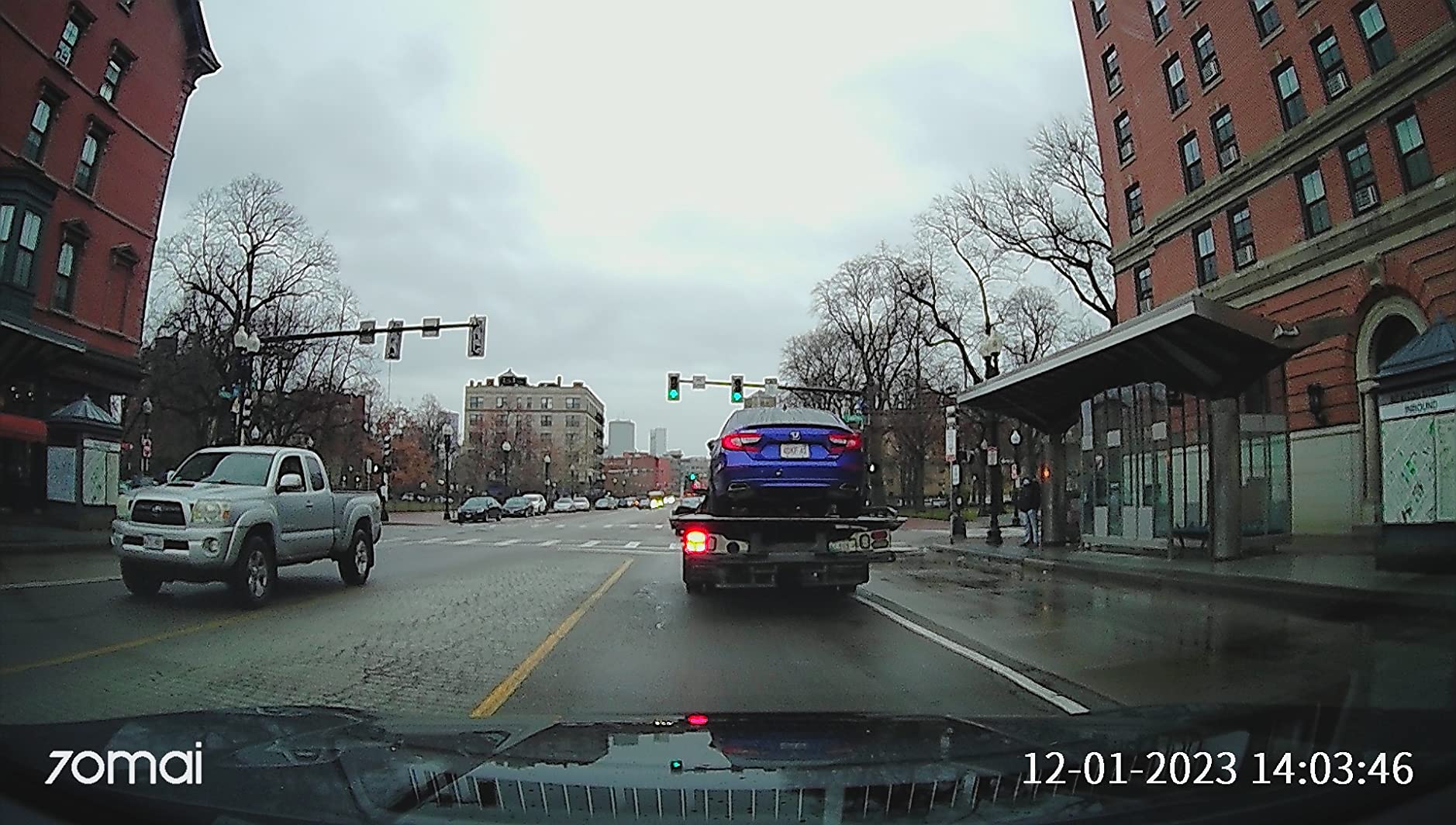 Quindi è come avere tre fotocamere contemporaneamente. Ne hai uno per la parte anteriore e uno per il lato passeggero. Tuttavia, se vuoi vedere l'autista, dovrai regolare la posizione della telecamera per catturarlo nell'inquadratura. La telecamera interna non può essere ruotata e catturerà solo una persona o i sedili posteriori alla volta se la posizioni esattamente al centro. Quindi è conveniente per chi guida per Uber. Anche la telecamera posteriore serve al suo scopo. Puoi anche collegarlo al backup in modo che quando lo metti in retromarcia, bam, la tua vista posteriore appare sullo schermo. Tuttavia non l'ho testato personalmente; Lo uso solo per tenere d'occhio quello che succede dietro di me, non per fare marcia indietro. Puoi passare facilmente da una visualizzazione all'altra della telecamera o addirittura averne due sullo schermo contemporaneamente (come immagine nell'immagine). Nel complesso, è un sistema piuttosto solido. Ma tolgo una stella perché il campo visivo non è esattamente di 170 gradi. Non riesco a vedere l'intero cofano anteriore e l'angolo è inferiore a 170. Inoltre, la fotocamera interna può catturare realmente solo l'angolo su cui è impostata la fotocamera anteriore. Quindi, se lo metti a destra rispetto al centro del parabrezza, catturerà il passeggero. Punto morto, e sono i sedili posteriori. Se vuoi registrare il conducente, dovrai attaccarlo al parabrezza dal lato del conducente, ma ovviamente non è l'ideale poiché blocca la visuale del conducente.