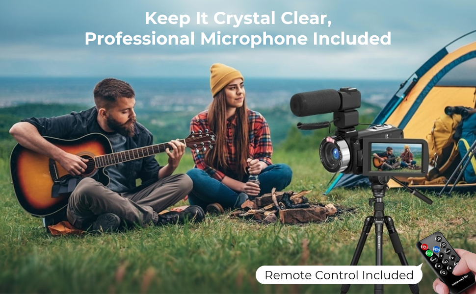 Goditi avventure all'aperto senza limiti! Con un attacco filettato da 1/4", puoi montare la videocamera su un treppiede e catturare audio cristallino con il microfono wireless incluso. Controlla ogni scatto senza sforzo con il telecomando, scattando foto o registrando video a distanza—perfetto per campeggio, sessioni musicali o vlogging con il tuo partner.