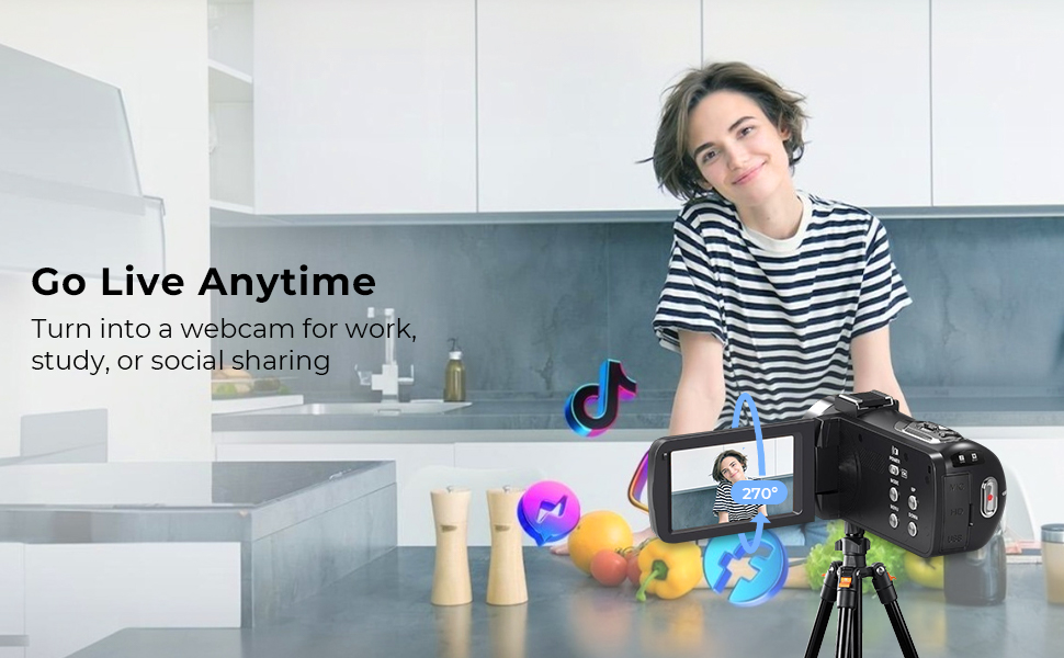 - * Microfono Incluso, Pronto per Contenuti Live: Trasforma la tua videocamera in una webcam per lo streaming su YouTube, TikTok o Skype. Perfetta per vlog, lezioni online o videochiamate, si collega facilmente per una creazione istantanea di contenuti live. Il microfono esterno filtra il rumore di fondo, quindi la tua voce è sempre nitida e professionale—ideale per interviste, streaming o videochiacchierate in famiglia.
