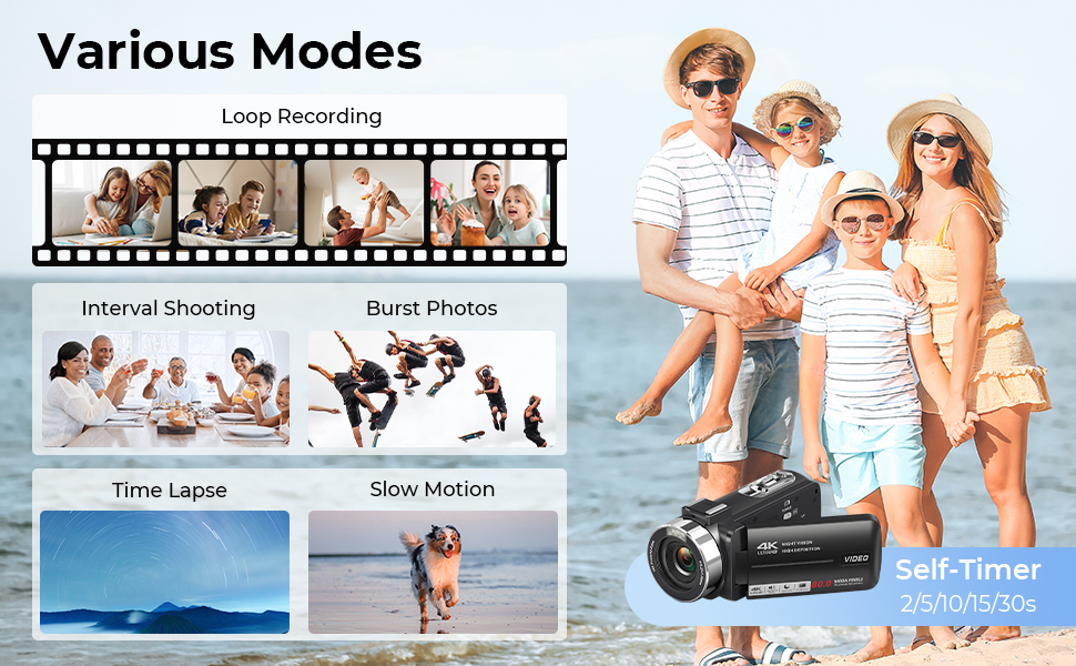 Questa videocamera è dotata di un sensore Sony CMOS da 13MP, in grado di registrare video fino a 4K 30FPS e scattare foto da 80MP. Supporta il rilevamento del sorriso per scatti perfetti ogni volta, offrendoti il pieno controllo creativo con ISO regolabile, compensazione dell'esposizione e bilanciamento del bianco. Inoltre, scegli tra 10 filtri integrati per adattarti al tuo stile e dare vita alla tua visione.