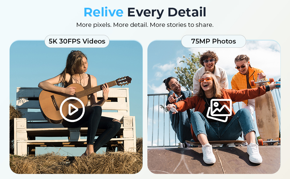 Video e foto da 75MP in sbalorditivo 5K sono solo l'inizio! Questa videocamera vanta un sensore Sony da 12MP di alta gamma per una qualità dell'immagine eccezionale. Dai sfogo alla creatività con esposizione regolabile, ISO, nitidezza e una gamma di filtri per realizzare la tua visione artistica unica. È inclusa una scheda di memoria da 64 GB, così puoi iniziare a riprendere subito! Le foto vengono salvate in formato JPG ei video in formato MP4 per una condivisione e un'edizione facile.