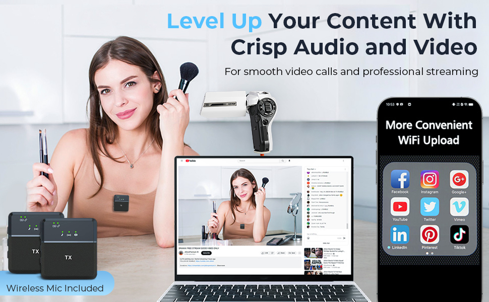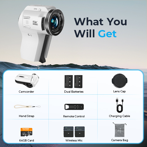 Migliora istantaneamente la tua presenza online. La videocamera Kentfaith 5K si trasforma in una webcam ad alta definizione per lo streaming live su YouTube, TikTok, Skype e altro ancora. Per garantire che il tuo audio sia nitido come il tuo video, includiamo un microfono wireless compatto che cattura chiaramente la tua voce senza limitarti.