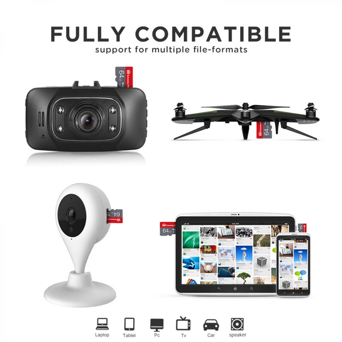 - * Class10: la velocità di lettura è di circa 15-30 mb/s e la velocità di scrittura è di circa 9-12 mb/s; la velocità della scheda Micro SD si basa su test interni; le prestazioni possono variare a seconda del dispositivo host, dell'interfaccia, delle condizioni di utilizzo e di altri fattori Diminuzione; La velocità della scheda Micro SD è in gran parte influenzata da lettori di schede, adattatori, porte USB, ecc. Le apparecchiature di bassa qualità ridurranno la velocità della scheda del 100%.