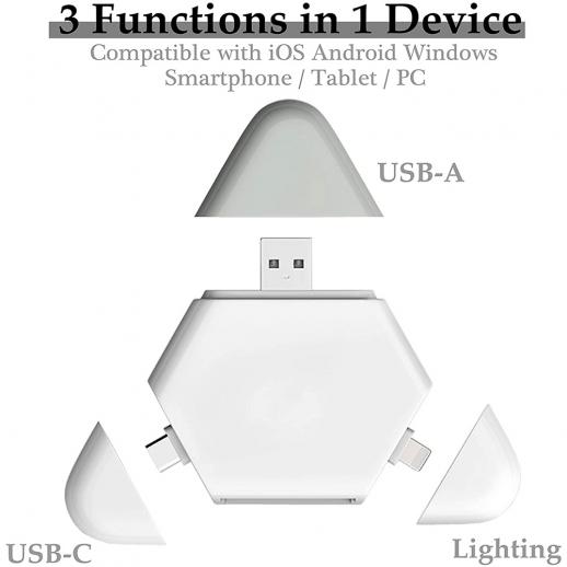 Ho ordinato l'adattatore per trasferire le immagini dalla mia fotocamera a un iPad e/o laptop. Poiché sulla chiavetta sono disponibili sia le connessioni USB-C che USB, le abilita entrambe e non è ancora più grande di una chiavetta USB. La trasmissione funziona velocemente ed è stata finora riconosciuta da tutti i dispositivi.Assolutamente al top per lo scopo che dovrebbe assolvere.