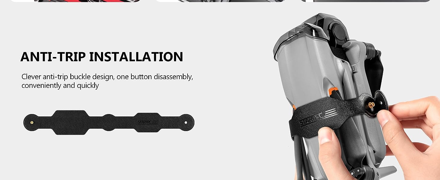 - * 【Design unico della fibbia】Facile da installare e rimuovere. Design unico della fibbia che è molto più facile e veloce da installare mentre si è sul campo o quando è necessario trasportare in modo sicuro per il vostro drone air 3.