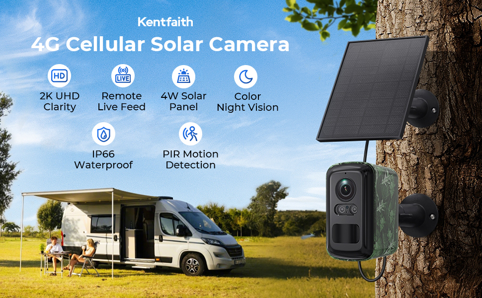 La telecamera solare outdoor Kentfaith è il tuo occhio nella natura, collegandosi direttamente alla rete 4G per l'accesso in diretta dal tuo telefono, non importa quanto remoto. Controlla la tua casa di campagna, monitora un cantiere o sorveglia il tuo ranch con video e audio HD in tempo reale. Inoltre, ti permette di condividere l'accesso con familiari o colleghi per rivedere insieme i filmati da qualsiasi parte del mondo.
