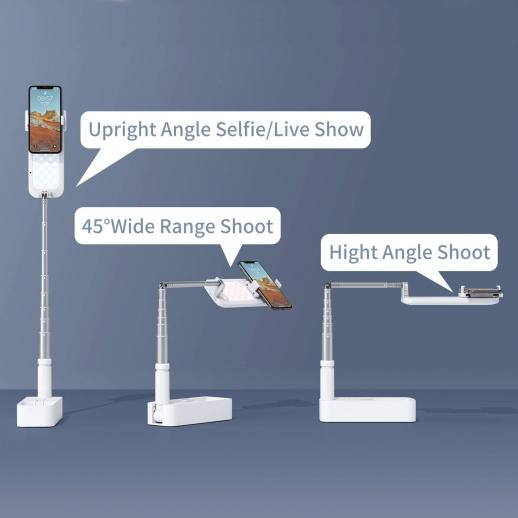 Multifunctional Live Show Foldable Stand can be extended from 15.7 inches to 49 inches (40cm-126cm) to achieve perfect shooting. 360°Adjustable Shoot Angle, Double-sided Fill Light; You only need to stretch and twist the street to fix the desired height and find the most suitable height.