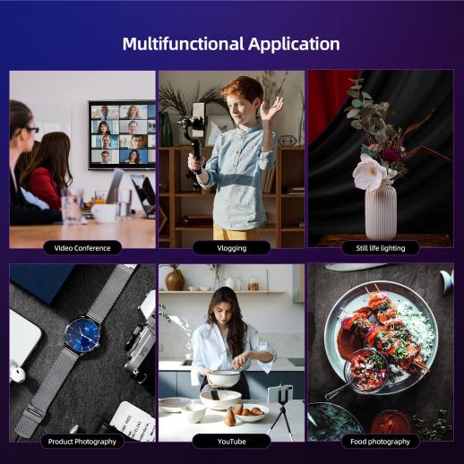 - * 【Tre modalità per vari scenari】: include la modalità CCT, la modalità HSI e la modalità effetti speciali EFF, adatta a diversi scenari per diverse espressioni creative e adattabile a varie applicazioni.