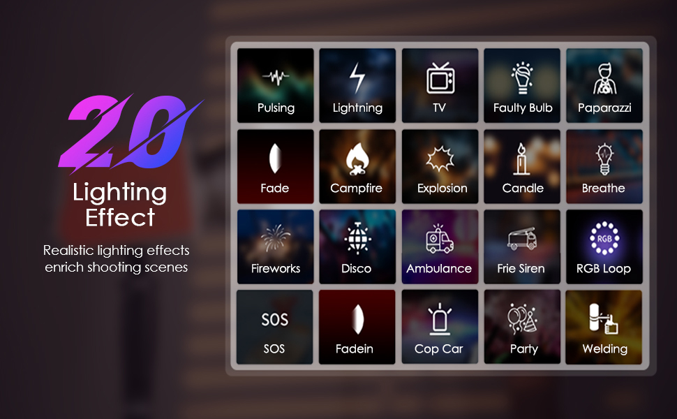 - * 【Compatta e potente con modalità RGB】 Pesando solo 0,81 kg e misurando 145 x 100 x 86 mm, la lampada video RGB LED presenta LED COB con uscita fino a 100 W. Offre temperatura di colore regolabile (2700K-6500K) e luminosità (0-100%). La modalità RGB consente regolazioni di tonalità (0-360°) e saturazione (0-100%). Con 20 effetti di luce incorporati, è possibile creare rapidamente varie atmosfere, migliorando la creatività e l'arte.