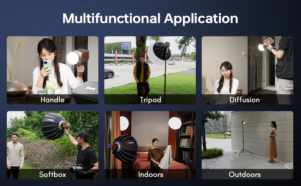 Organizza tutti gli accessori e l'illuminazione, rendendo facile trasportare tutto con una mano fotografica.