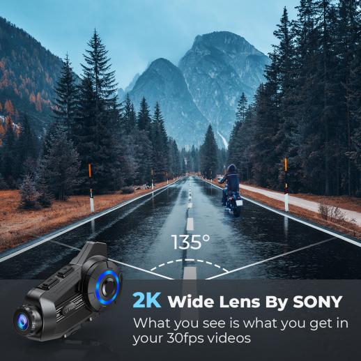 - * 【Una "Gopro" e Dash Cam】Con una fotocamera Sony HD 2K 30fps, le nostre cuffie per casco Bluetooth conservano il tuo viaggio in dettagli mozzafiato, dalle viste panoramiche alla tua posizione eroica. Ma è più di un semplice creatore di ricordi: è il tuo angelo custode che registra le prove vitali negli incidenti. Il sensore di gravità integrato rileva impatti improvvisi e blocca istantaneamente il filmato, assicurando che non sia mai sovrascritto e prontamente disponibile quando ne hai