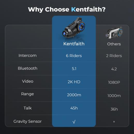 - Se stai cercando una soluzione semplificata per goderti musica, comunicazione e registrazione video, ma non vuoi il fastidio di cavi o prendere extra sul casco, sei fortunato. Il casco Bluetooth KentFaith integra perfettamente una fotocamera, auricolari e microfono, aggiungendo un tocco vibrante alla tua corsa. Grandi pulsanti e semplicità d'uso garantiscono un facile controllo, anche quando si indossano i guanti.