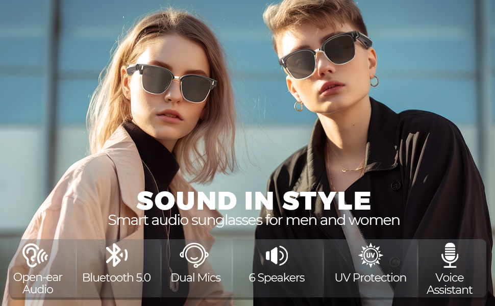 - I nostri occhiali da sole con altoparlanti offrono un'esperienza di ascolto davvero premium. Doppi microfoni antirumore e 6 altoparlanti stereo in entrambi i bracci garantiscono chiamate e musica cristallina, anche in condizioni rumorose o ventose. L'audio ottimizzato fornisce bassi estesi e volume elevato, in modo da poter ascoltare al meglio i brani.