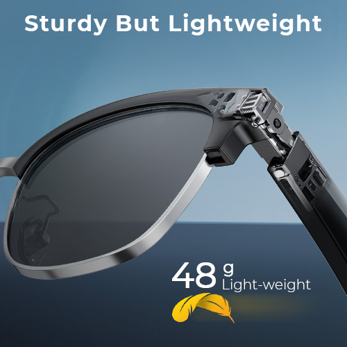 Con soli 48g, questi occhiali da sole intelligenti sono incredibilmente leggeri e confortevoli - difficilmente noterai di indossarli. E l'esclusivo design unisex significa che stanno benissimo su tutti, sia che ti rilassi o stai sudando.