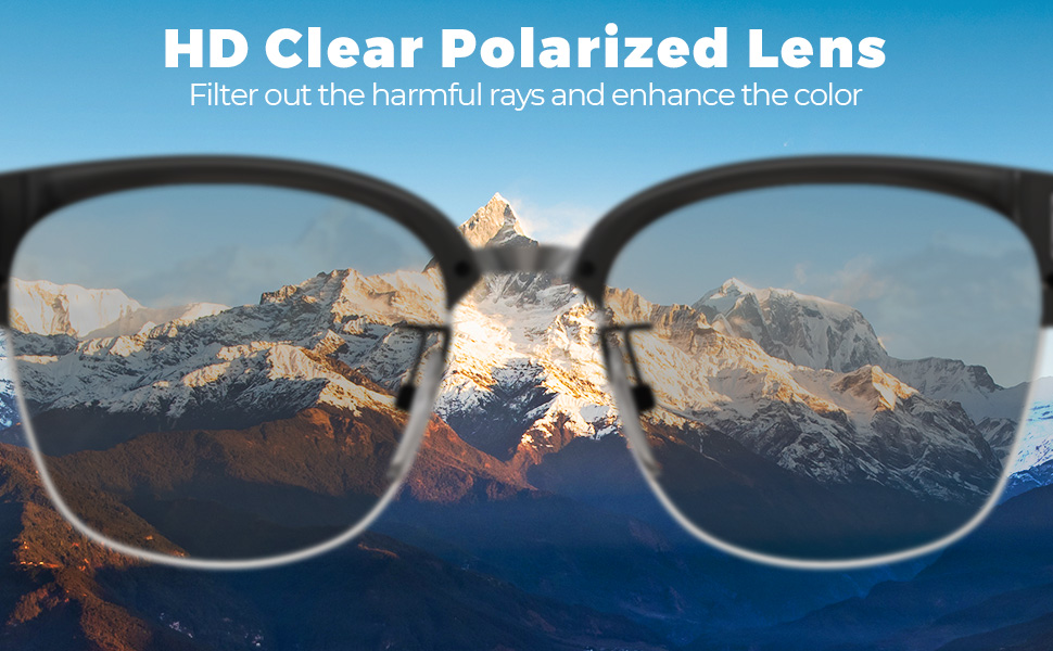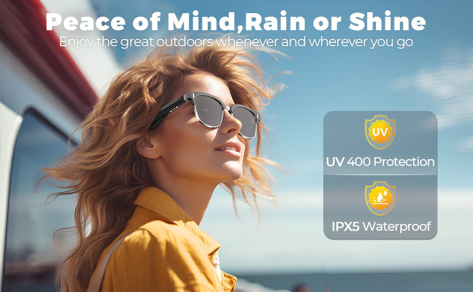 I nostri occhiali da sole intelligenti sono importanti quando si tratta di proteggere gli occhi. Le lenti UV400 bloccano un impressionante 99% dei dannisi raggi UVA/UVB, e il design polarizzato taglia attraverso l'abbagliamento, garantendo una visibilità nitida e confortevole, non importante quanto luminoso sia fuori. Ottieni una protezione affidabile e una maggiore chiarezza visiva, il tutto racchiuso in un pacchetto elegante ed elegante.