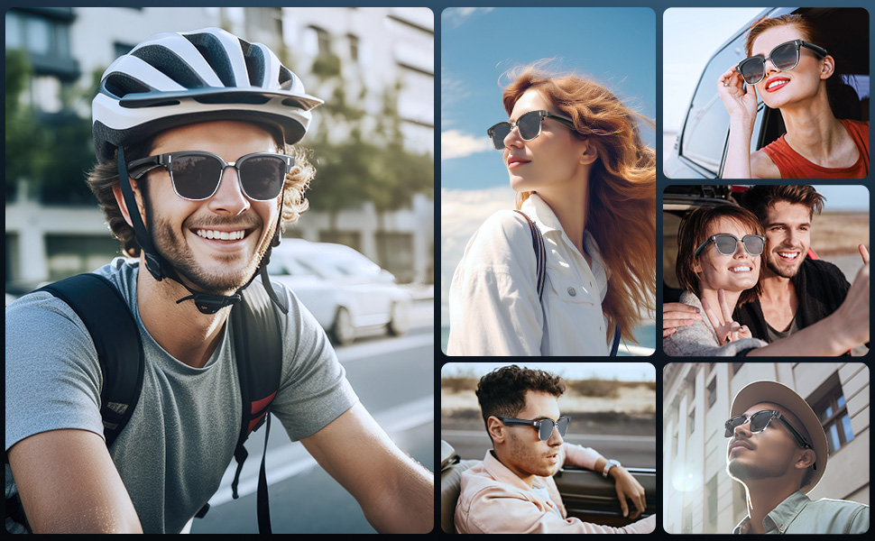 - * 【Ascolta la musica e il mondo】:Con l'audio a orecchio aperto, i nostri occhiali da sole Bluetooth proiettano il suono direttamente nelle tue orecchie senza bloccarli, in modo che tu possa bloccarti pur essendo consapevole del traffico, delle conversazioni e del mondo intorno a te. Perfetto per stare al sicuro e impegnato durante le attività come correre, andare in bicicletta o esplorare la città.