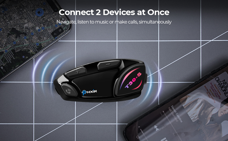 Perché scegliere il nostro altoparlante Bluetooth casco? Con Bluetooth multipoint, connettiti a 2 telefoni contemporaneamente! Naviga, ascolta musica o effettua chiamate allo stesso tempo: è super conveniente!