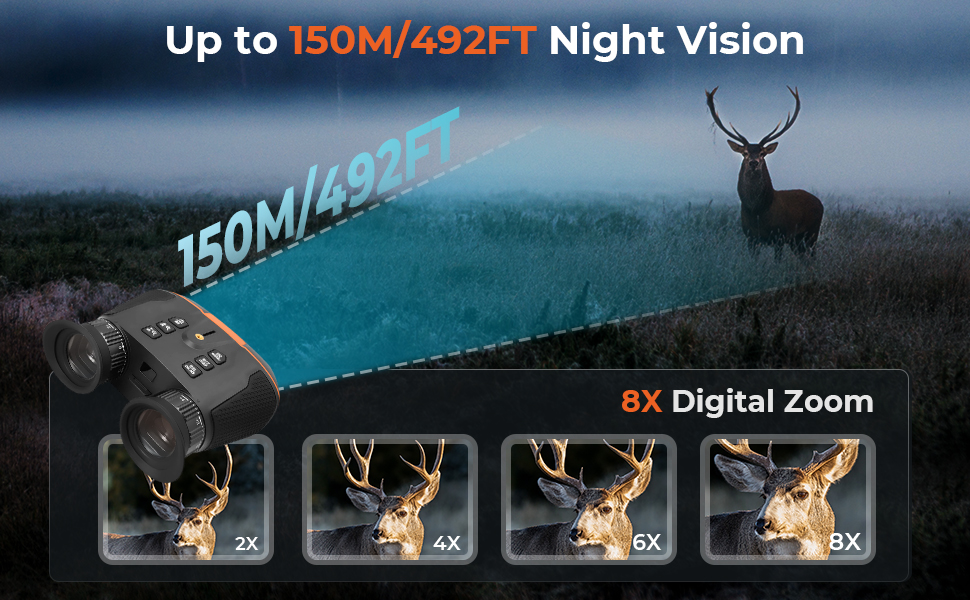 Sì, questi binocoli per visione notturna da campeggio offrono uno zoom digitale 8X, perfetto per individuare animali o dettagli distanti senza avvicinarsi.