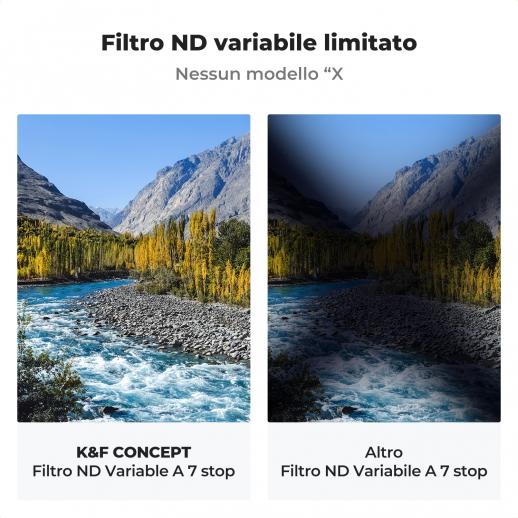 - * 【Cornice autobloccante, nessuna croce 'X'】 Dì addio alla croce "X" sulle immagini, K&F Concept utilizza una tecnologia all'avanguardia per evitare perfettamente il comune problema "X" del filtro ND variabile su obiettivi grandangolari e teleobiettivi .