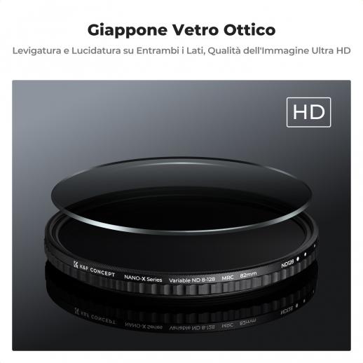 K&F Concept 82mm Filtro ND Variabile ND8-ND128 (3-7 stop)con Rivestimento Nano a 28 Strati - Serie Nano-Xcel