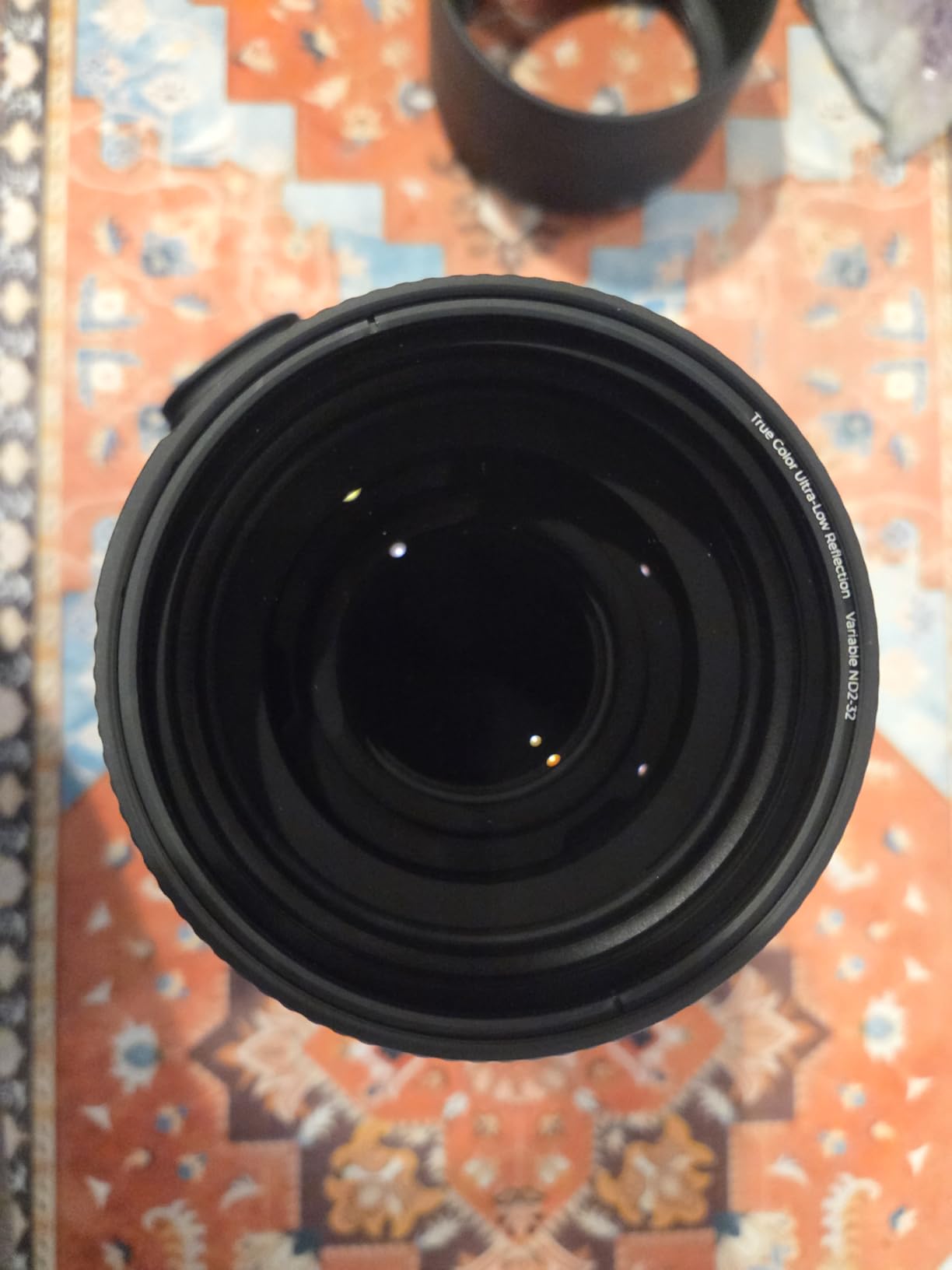 Ho provato questo filtro su un obiettivo Tamron 150-500 mm con attacco E e sono rimasto piuttosto colpito. In una giornata nuvolosa, con la fotocamera impostata a 150 mm, F9 e ISO 400 per tutte le immagini, un'impostazione ND del filtro pari a 2 richiedeva un tempo di posa di 1/3200 per un'esposizione corretta. Con il filtro impostato su ND 32, il tempo di posa era di 1/320. Non si sono verificati cambiamenti significativi nei colori e non si sono introdotte altre aberrazioni, inclusa la vignettatura. La qualità costruttiva sembra molto buona, con una sensazione di estrema fluidità durante la sostituzione dell'ND. L'azione è così fluida che non c'è davvero bisogno della grande linguetta arancione per regolare il filtro. Fortunatamente, la grande linguetta arancione può essere rimossa con una punta Torx, cosa che ho fatto per poter utilizzare il paraluce del mio Tamron (vedi foto) con il filtro montato. Un'ultima nota: avvitare il filtro sull'obiettivo sembra troppo stretto e il filtro non si avvita facilmente, il che gli conferisce un aspetto un po' scadente. Ma nel complesso, sono molto soddisfatto del filtro.