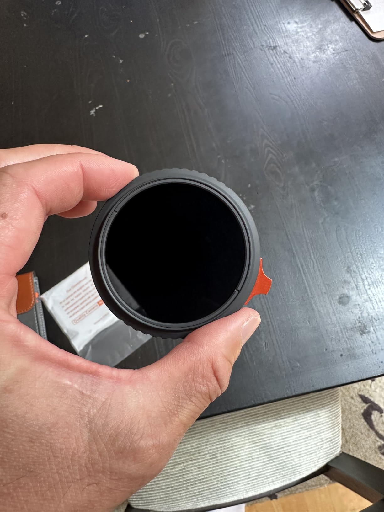 All'inizio mi piaceva la maniglia o manopola arancione per ruotare il filtro a vari livelli di ND, ma dopo un po' ho capito che non è poi così utile. Ha un bell'aspetto e potrebbe rendere più facile vedere dove si trova il filtro ND dall'estremità superiore a quella inferiore, ma alla fine non ha aggiunto molto. La qualità del filtro in sé è buona e viene fornito con una custodia in similpelle davvero carina per riporlo, il che di per sé lo rende un ottimo set di filtri. La parte esterna in alluminio ha delle alette zigrinate per facilitarne la presa e la rotazione insieme alla manopola arancione. Nel complesso è un buon filtro e il colore reale è migliore che senza filtro. L'ho usato solo poche volte e finora funziona benissimo. Sono molto soddisfatto del filtro, ma è piuttosto costoso.