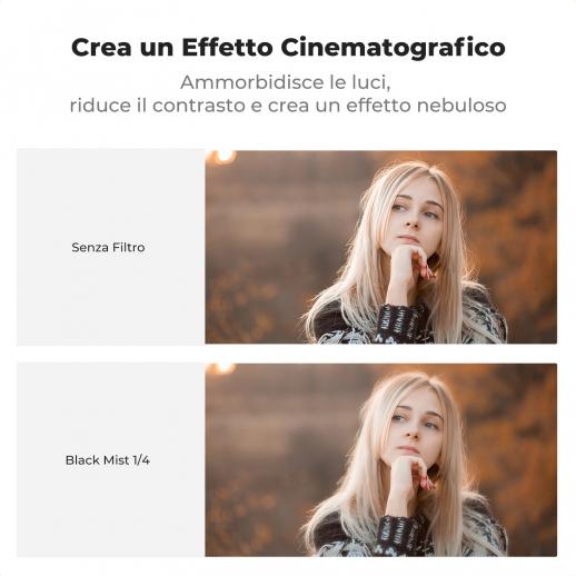 - * 1. Dotato di un filtro nero morbido da 67 mm da 1/4, che ammorbidisce le alte luci, riduce il contrasto, ammorbidisce i dettagli dell'immagine e può produrre un effetto alone in un ambiente con sorgente luminosa, aumentando il senso artistico e il romanticismo sognante dell'immagine.