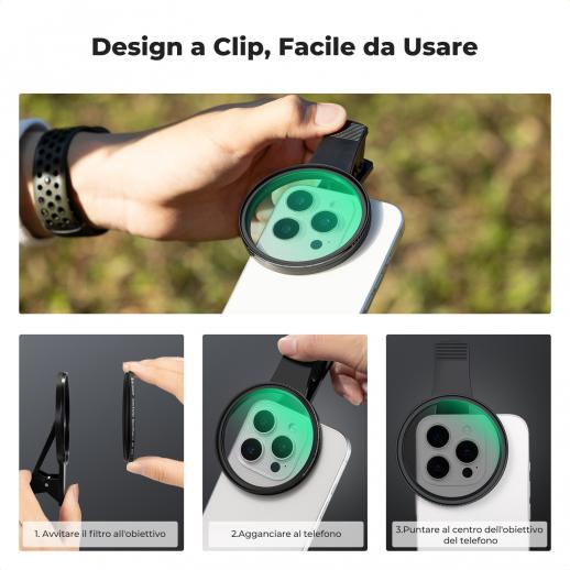 67mm Kit Filtro per obiettivo della Fotocamera del Telefono con Clip Filtro Black Mist 1/4, Applicabile a Tutti i Modelli di Telefono Cellulare