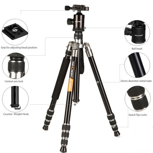 K&F Concept TM2534 DSLR Camera Tripod Monopod Kit misura Canon, Nikon