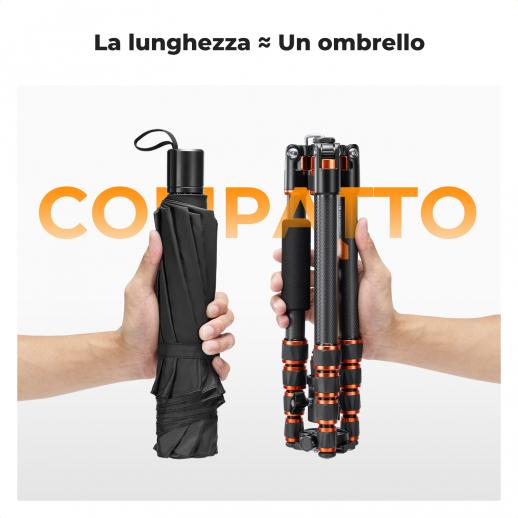 Sembra un treppiede fantastico per i tour fotografici. Ha tutto ciò che è essenziale in un treppiede, ma con un peso molto basso grazie alla fibra di carbonio e sacrificando un po' l'altezza, poco più di 150 cm, motivo per cui l'ho scelto. Faccio fotografia macro e paesaggistica e non ho bisogno dell'altezza. Per la fotografia in studio ne ho un altro della stessa marca che ho comprato qualche anno fa e regge ancora molto bene.