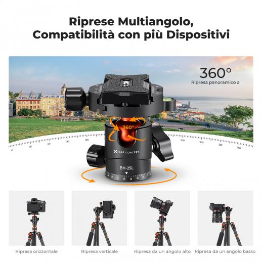 - * 【Testa a sfera panoramica a 360°】 La testa a sfera da 25 mm appositamente progettata può ruotare di 360° e ottenere angoli liberi, consentendo di ottenere lo scatto perfetto e un panorama straordinario ogni volta.