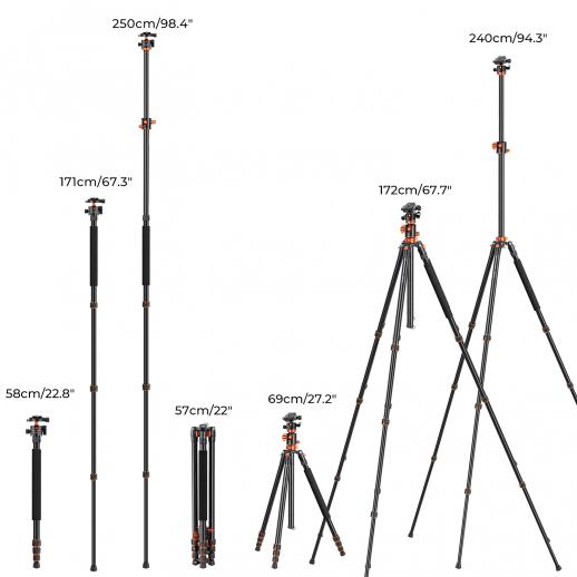 - * 【Regolabilità in Altezza】Con 4 sezioni di gambe, è possibile regolare facilmente il treppiede reflex da 66.5cm a 230cm in pochi secondi. La borsa per il trasporto è inclusa.
