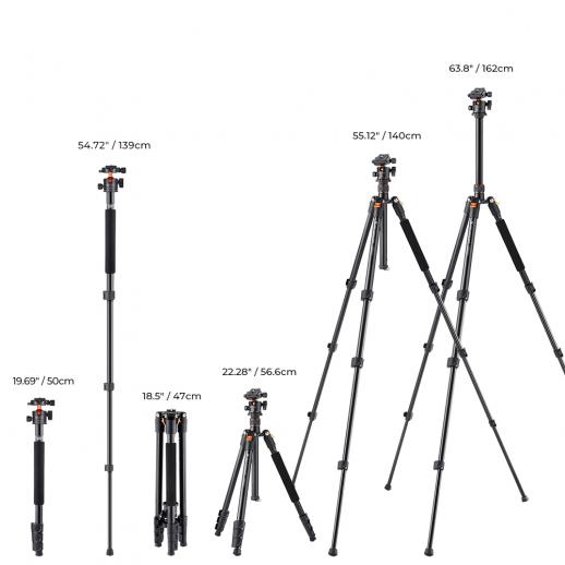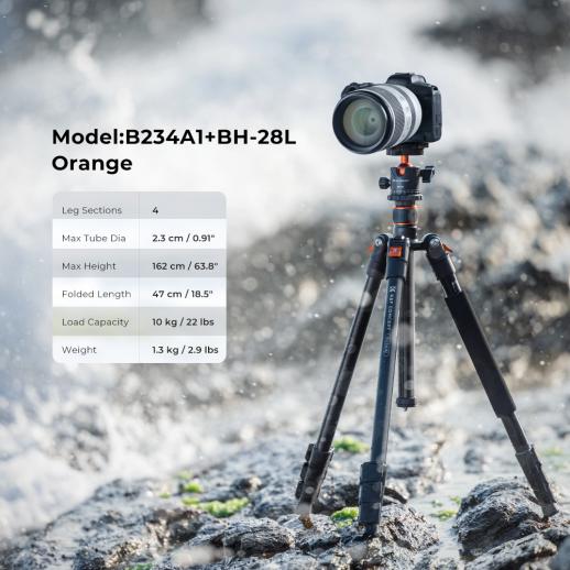 162cm Treppiede in Alluminio per Fotocamera + Testa a Sfera, Carico Massimo 10 kg, Arancione - K234A0+BH-28L(TM2324 aggiornato)