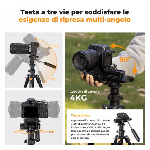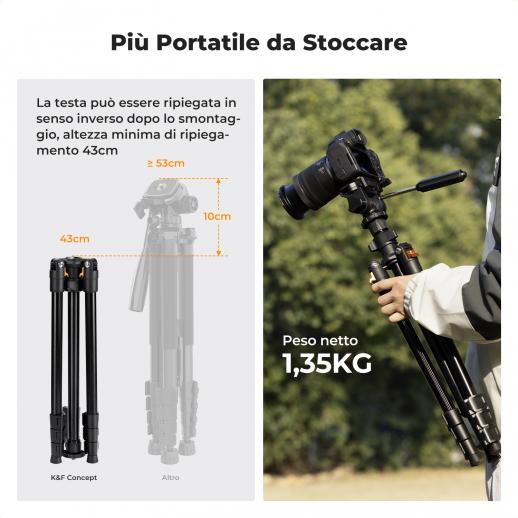 Treppiede professionale in alluminio K&F Concept modello K234A0 + testa video