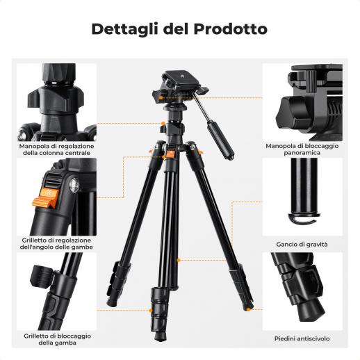 - * 【Treppiede Multiuso】La colonna centrale inverte l'installazione (anche con una colonna centrale corta) per ottenere le riprese con l'angolo più basso, le riprese ad arco e le fotografie speciali, nuove possibilità nella fotografia.