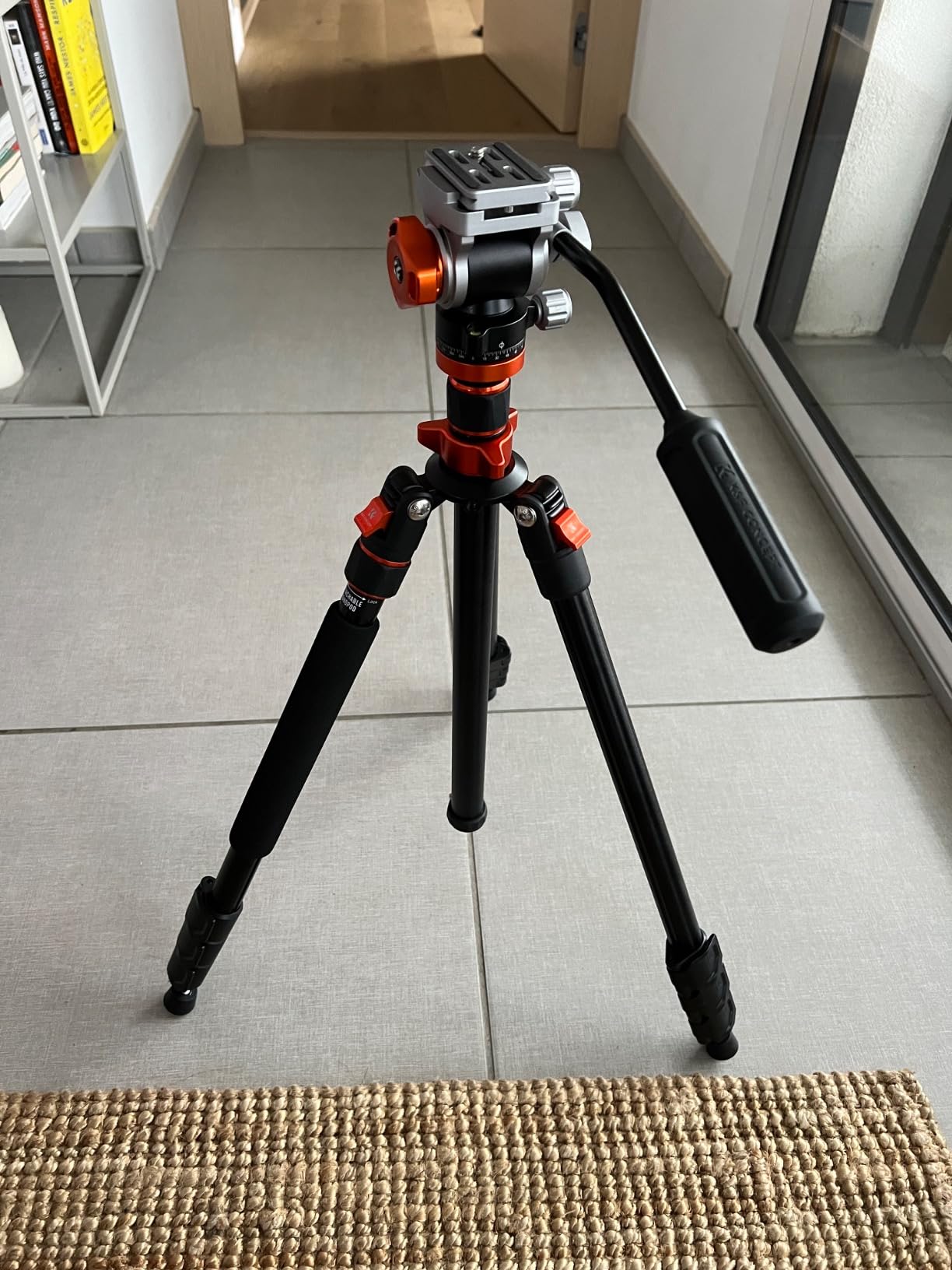 Questo è un treppiede davvero eccellente, solido e dall'aspetto e dalle sensazioni piacevoli. Tutte le parti mobili sono zavorrate e si muovono fluidamente, i blocchi si bloccano saldamente in posizione e non hanno problemi a sostenere praticamente qualsiasi peso di reflex digitali e anche di più. Ci ho addirittura appoggiato la mia fotocamera mentre era montato su un cardano con il microfono attaccato, solo per vedere come si sarebbe comportato, e non ha avuto problemi. È un po' pesante, con i suoi 2 kg, quindi è probabilmente più adatto a uno studio o a un altro luogo statico, ma ha una custodia imbottita con tracolla, quindi puoi portarlo con te e non è poi così un problema. Onestamente, appena tolto dalla scatola, è un affare incredibile e probabilmente l'unica cosa che gli manca è una testa a sfera a 360°, ma ho cercato e ho visto che si può acquistare una testa a sfera abbinata a un prezzo non eccessivo, quindi è fantastico. Per il prezzo, penso che sia un kit fantastico e facilmente alla pari con qualsiasi altro treppiede di qualità. Per me, tutto sta nell'attenzione ai dettagli e nella qualità costruttiva, e questo modello è perfetto. Penso che stia benissimo anche con le parti arancioni anodizzate, e anche se questa potrebbe non essere la priorità assoluta, è sicuramente un vantaggio in più. Consigliatissimo.