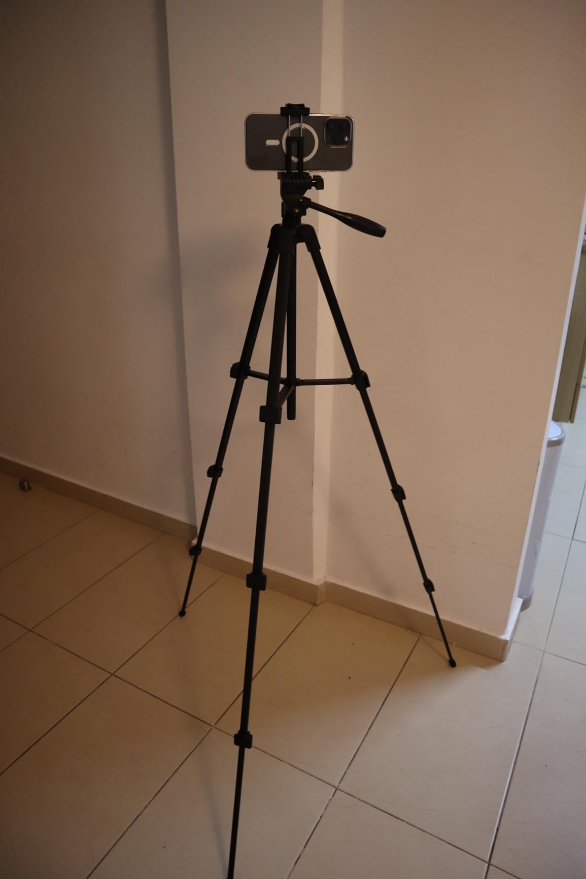 Ottimo treppiede: è robusto, molto leggero e sostiene perfettamente il telefono. Ha anche una maniglia girevole per orientare il telefono da un lato all'altro, cosa che adoro. Nel complesso è un ottimo supporto.