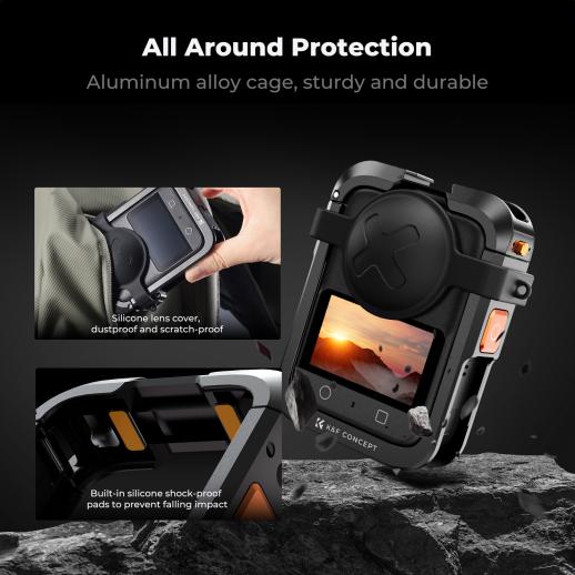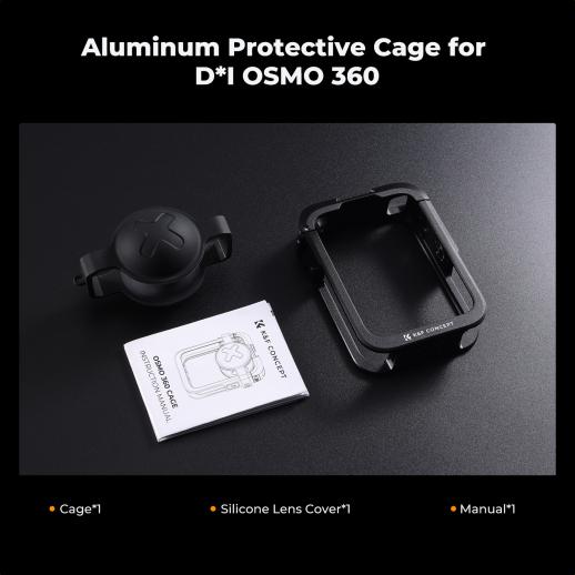 - * [Dedicato per Osmo 360]: questa gabbia protettiva in metallo di K&F Concept è progettata appositamente per DJI Osmo 360, è realizzata in lega di alluminio, è dotata di una copertura per l'obiettivo in silicone, robusta e durevole, fornisce alla tua fotocamera una protezione completa contro cadute e urti e non influisce sulla creazione di contenuti a 360 gradi.
