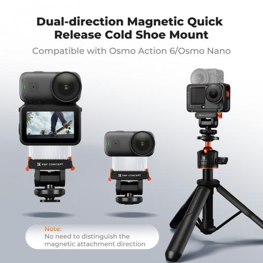 K&F Concept Supporto a slitta fredda compatibile con DJI Osmo Nano/Osmo Action 6, supporto magnetico a montaggio rapido per action camera, adattatore per treppiede, connettore per fotocamera a slitta fredda con foro per vite da 1/4"