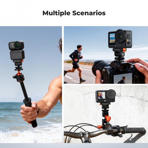 - * Resistente e stabile: realizzato in lega di alluminio di alta qualità, è robusto e durevole, la struttura affidabile garantisce un supporto stabile. Nota: non adatto per macchine con sistema di sgancio rapido unidirezionale DJI come Action 3/4/5 Pro, Osmo 360