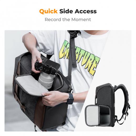 K&F Concept 20L Zaino Fotografico Multifunzionale con Copertura Antipioggia - Backpack Urban Wander 02(Grigio Fumo)