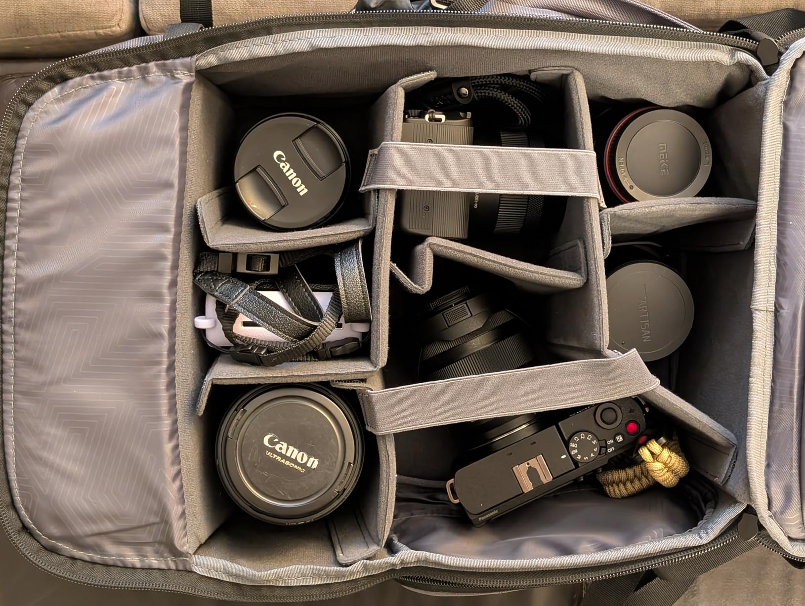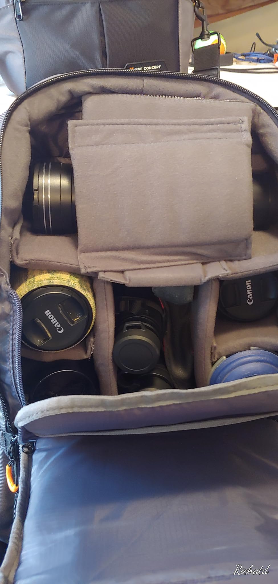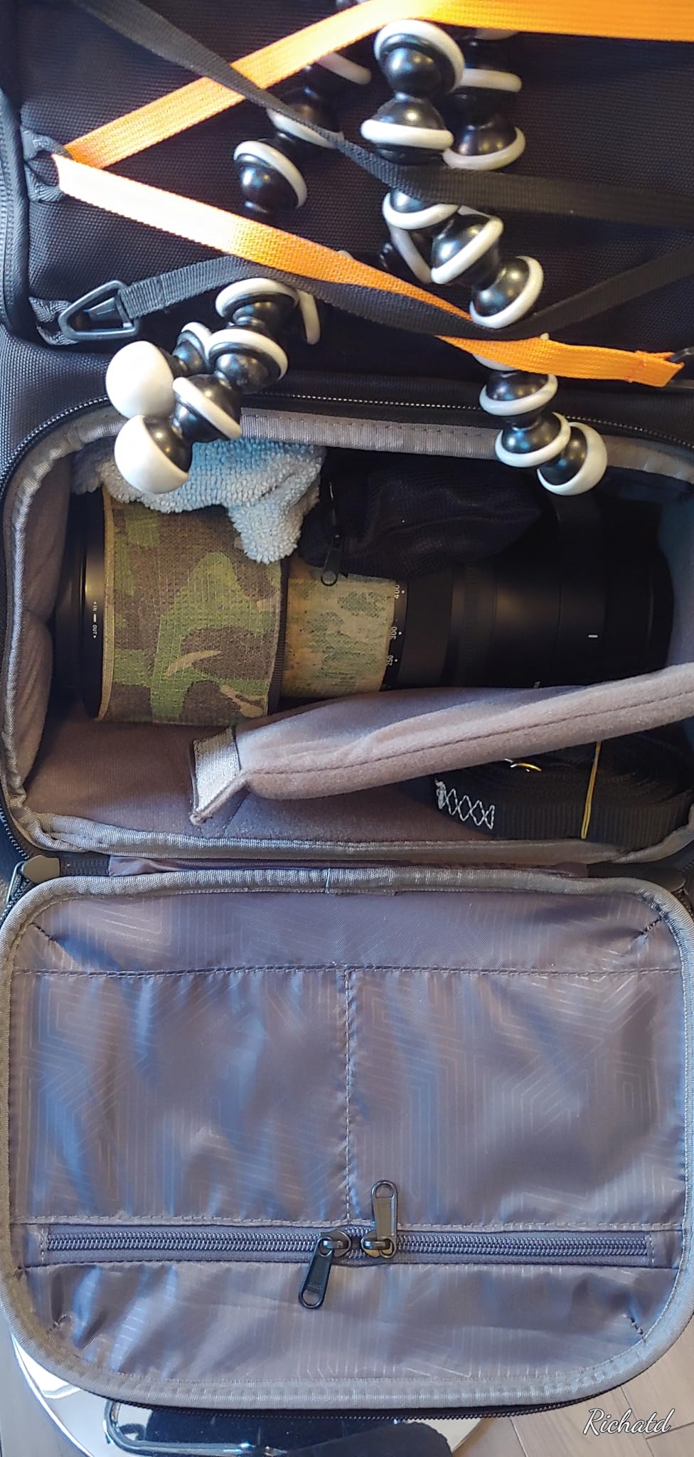 La mia attrezzatura è al sicuro nello zaino: è ben imbottito e contiene TANTA attrezzatura. Attualmente ho due corpi macchina e 5 obiettivi, più tutte le batterie di riserva, i filtri, ecc., e non ho dubbi sulla sua resistenza durante i miei lunghi viaggi. Apprezzo anche il fatto che ci stia anche il mio portatile... la mia precedente borsa fotografica non ci stava, quindi era un problema per il bagaglio a mano. Con questo zaino ho la soluzione!