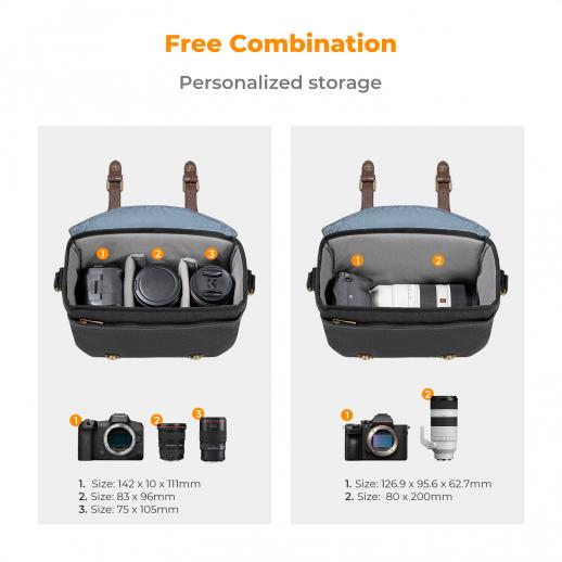 • * 【Spazio personalizzabile】Questa borsa fotografica a tracolla ha due divisori imbottiti rimovibili per tenere separate e protette diverse fotocamere, flash, obiettivi e altre attrezzature fotografiche; puoi regolare lo spazio interno in base alle tue esigenze.