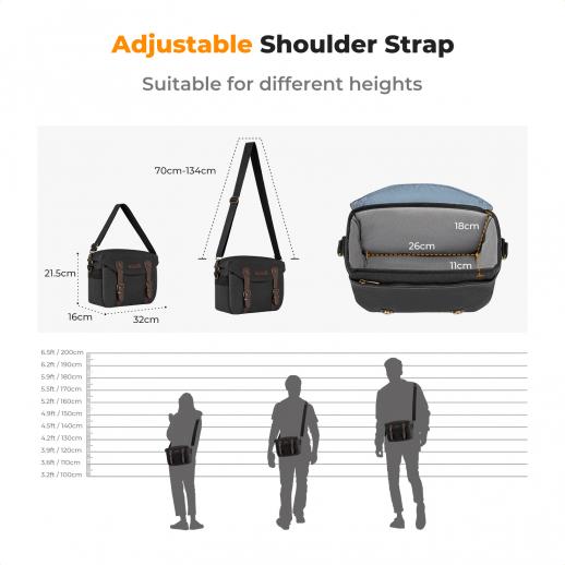 • K&F Concept 10L Borsa A Tracolla Per Fotocamera, Custodia Per Fotocamera Vintage Imbottita Impermeabile Con Copertura Antipolvere - Sling Bag Urban Wander 06 Grigio Scuro
