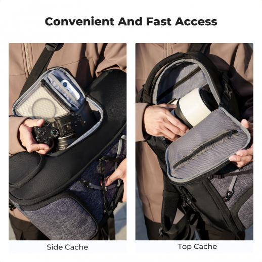 - * 【Accesso frontale e laterale doppio】Progettate per garantire velocità ed efficienza, le aperture laterali e frontali consentono di recuperare rapidamente i dispositivi, perfette per fotografi e viaggiatori sempre in movimento.